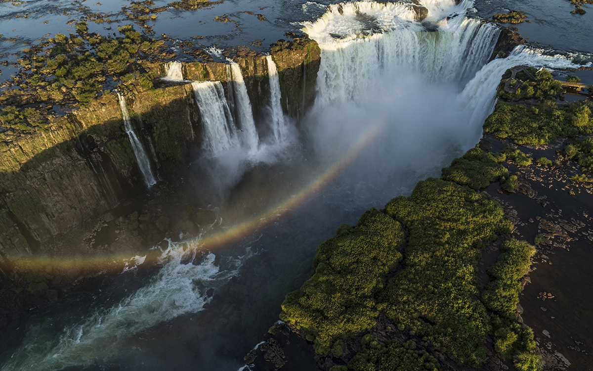Aerial view of a rainbow over Iguacu Falls. | Photo courtesy of National Geographic for Disney+/Freddie Claire