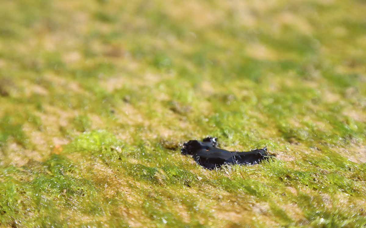 On a Sunday in mid-November, dozens of beachgoers were wading through the turquoise water as kids splashed in the surf and played in the sand. And beside them, only feet away, were little black dots—thousands of them. They clung to the sand and the rocks, or else floated, glistening and metallic-looking, in the water. The black dabs lined the beach, stretching to the horizon in both directions.