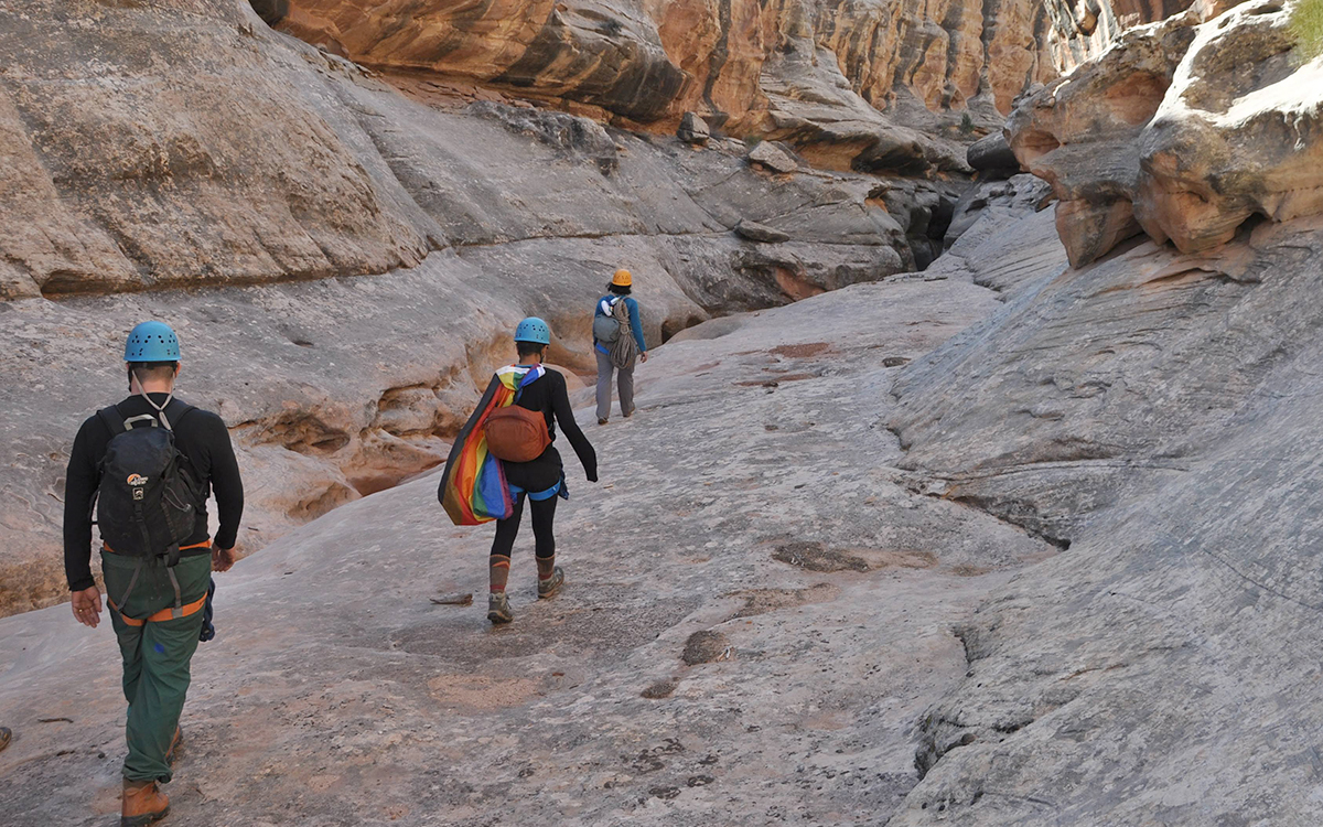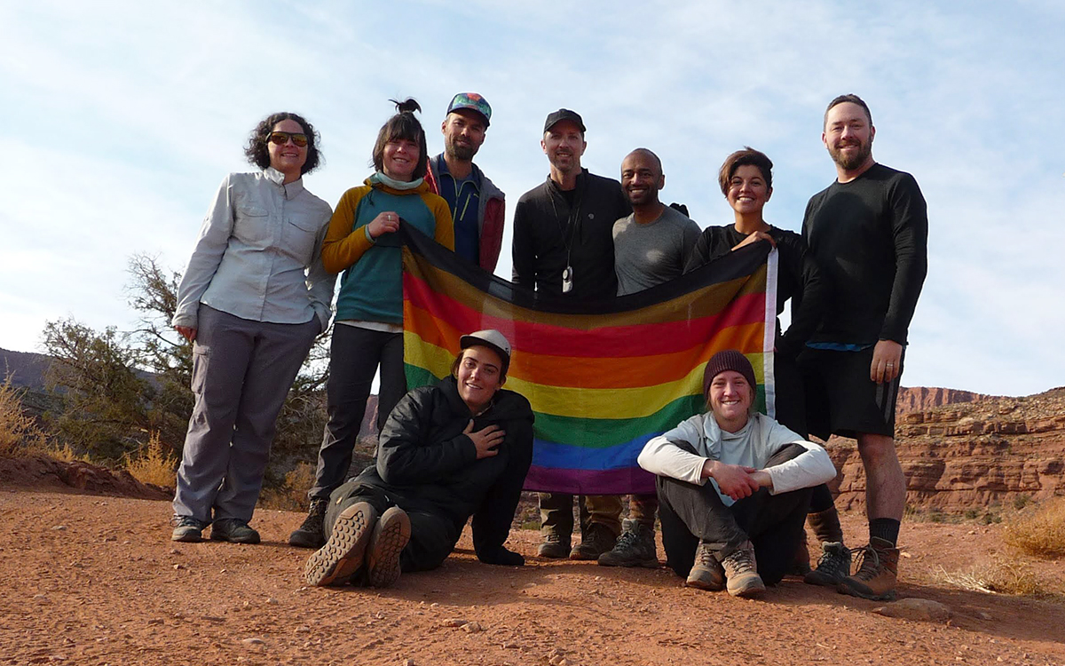 In the last decade, queer people have responded to such bigotry by creating several organizations—Queer Nature, Venture Out Project, Out There Adventures—that provide safe spaces for queer people to enjoy the outdoors. NOLS’s commitment to diversity, stated in its 2014 strategic plan, led to the creation of the organization’s first affinity hiking trips last year, including our all LGBTQ+ trip through the Utah desert. Four other LGTBQ+ courses—ranging from horsepacking Wyoming’s plains to sea kayaking in the Pacific Northwest—are scheduled for 2020.