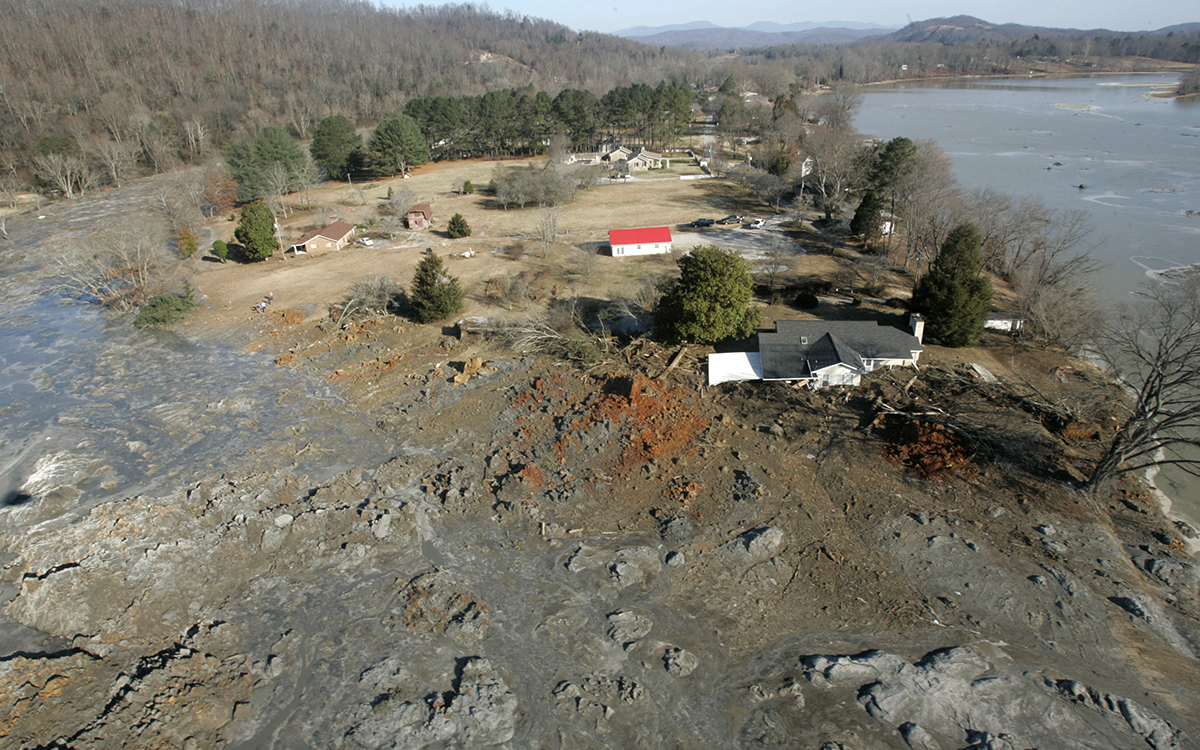 The men were among the first responders to the largest coal ash spill in US history. Over a billion gallons of Kingston’s coal ash slurry had punched through an earthen wall about six stories tall. After the first day, Ron told his wife the devastation at the site was unbelievable; it looked like the moon. Dozens of homes and 300 acres of rural Roane County, including the Emory and Clinch Rivers, upstream from the Tennessee River, were swamped in a thick gray porridge. All told, it was over five times the size of BP’s Deepwater Horizon oil spill.