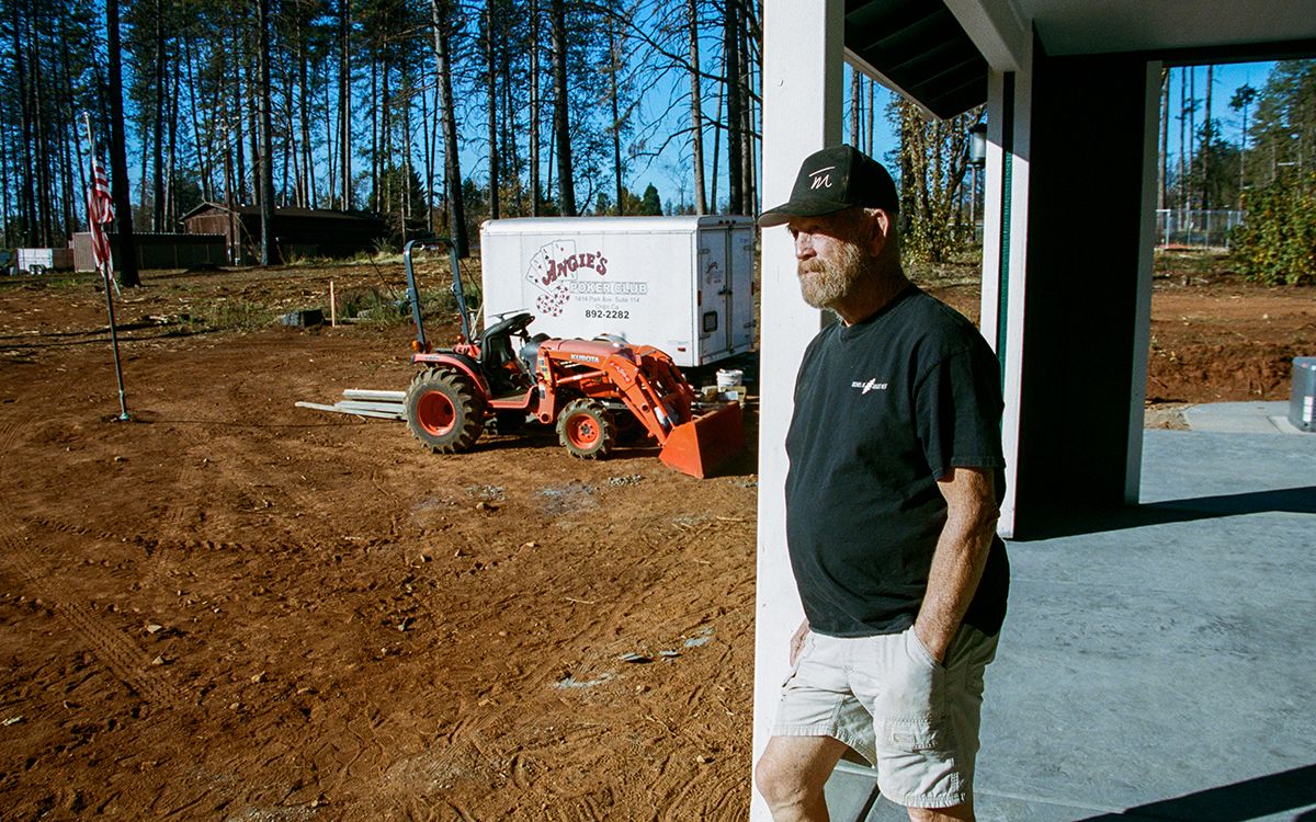 Steve "Woody" Culleton outside his newly rebuilt house. | Photo by Sarah Soquel Morhaim