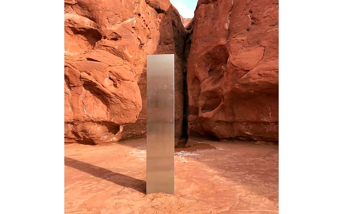 If you were under a rock—presumably one far distant from southeastern Utah—here’s what happened. On November 18, biologists with Utah’s Division of Wildlife Resources, busy tracking bighorn sheep through San Juan County’s red rock desert, spotted something strange from their helicopter. It was a shiny triangle about 10 feet tall and two feet wide, cut and affixed into the ground, with a little epoxy left over.