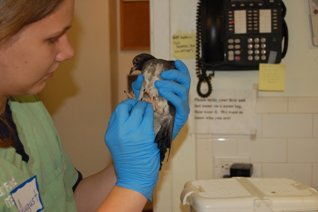 From the outside, the Wild Bird Fund looks like a storefront, but instead of mannequins in the windows, live pigeons perch on branches. The inside is teeming with avian patients of all kinds—seagulls, ducks, geese, swans, and various songbirds. By and large, though, the majority of patients are pigeons.