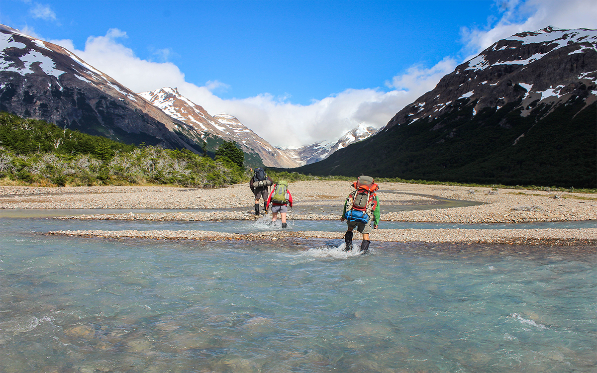 After fording a rib-deep and bone-cracking-cold river whose current could have easily swept away a person much bigger than I am, I took stock of my surroundings. My companions and I were sodden and soggy, huddled against slanting hail on the banks of the Jeinimeni River in Patagonia. Miserable? You bet. But there were also huge grins plastered across all our faces. Exhilarated? Yes. Joyful? Plainly. Through rivulets of water cascading down rain-jacket hoods, I registered a few shell-shocked expressions. Everyone seemed to be chewing on the same question: How in the hell did I end up spending Christmas morning with frozen feet?