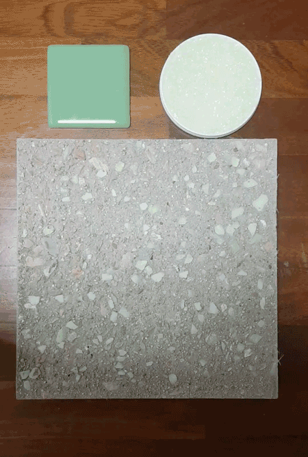 Anna Laura Pisello and colleagues at the University of Perugia are trying to create practical pavements that glow in the dark. They are experimenting with different luminescent substances, and testing how to add them to pavement material to get the best performance and durability. Above are samples of luminescent materials and a paving stone in which they have been embedded. Image courtesy of Anna Laura Pisello.