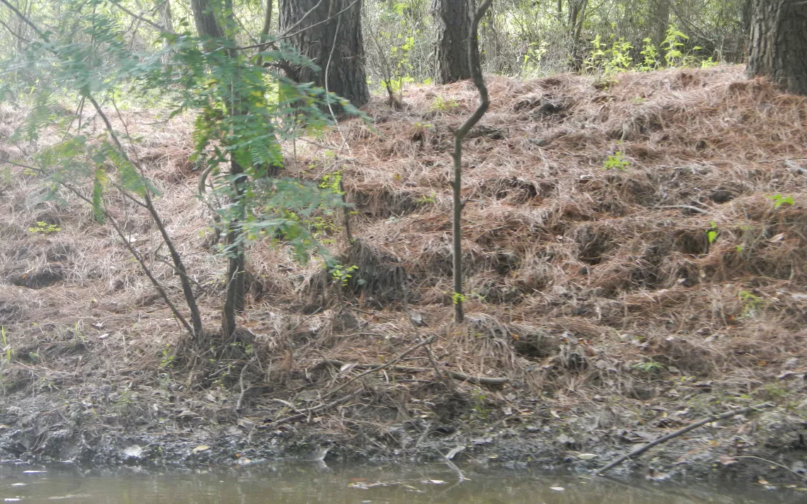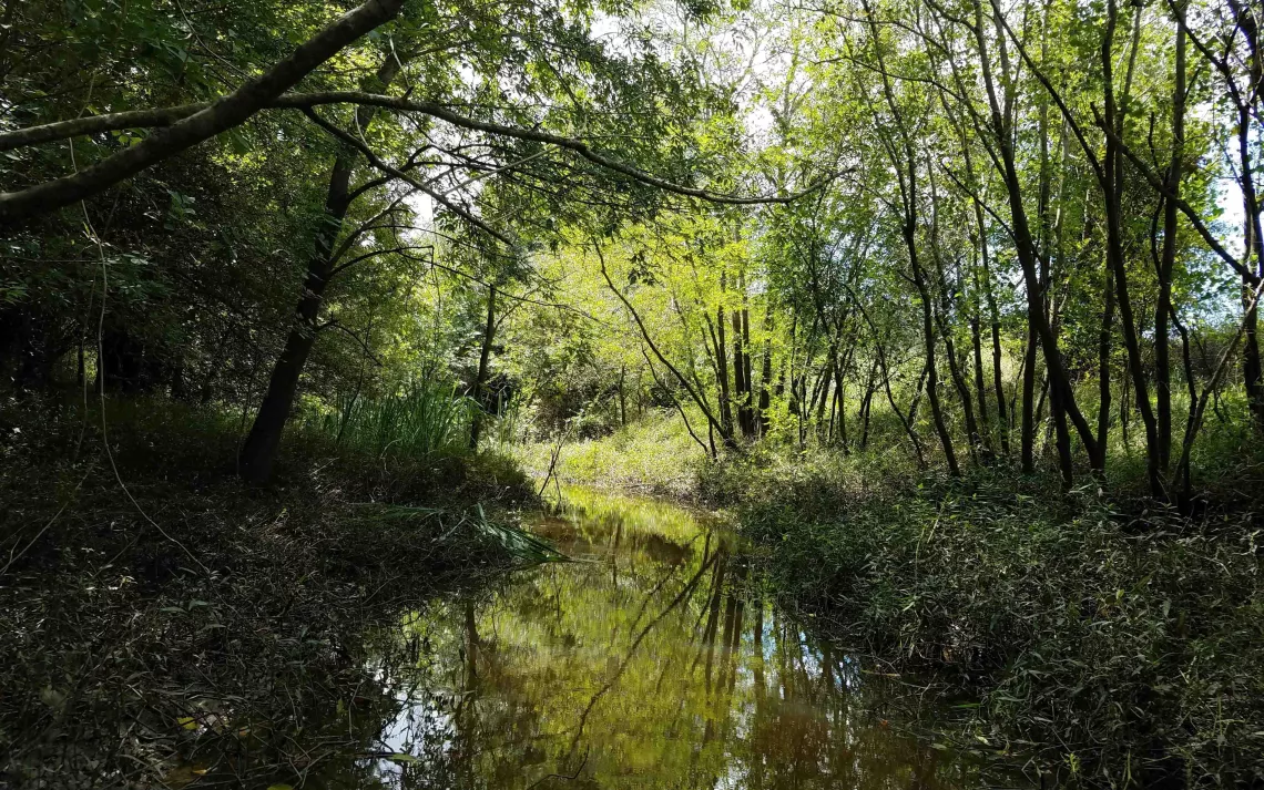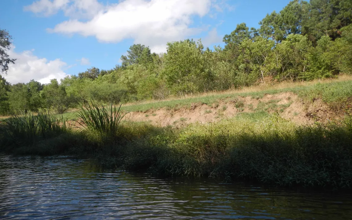 Both sides of the bayou were forested in many places, although several stretches of the west bank were still healing from the removal of trees that took place several years back. There, portions of the bank had slumped and collapsed into the channel.