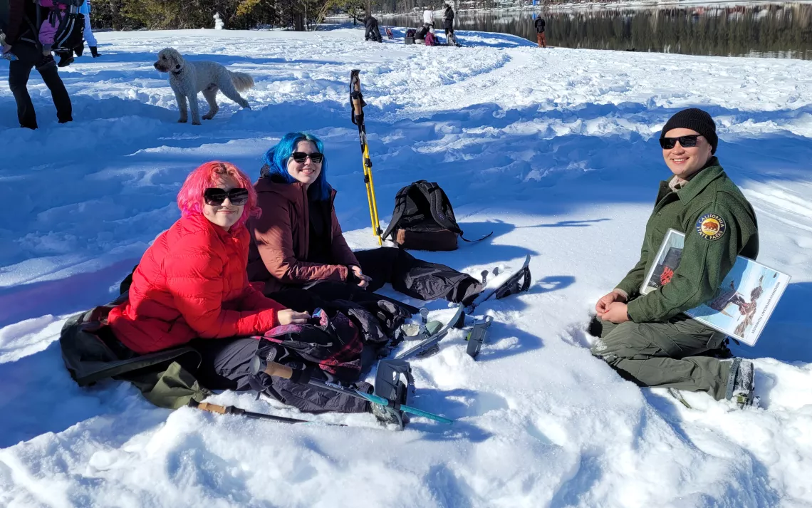 Our first trip took place on January 28, 2023: Thirteen students from Hug High School in Sparks, Nevada wore snowshoes for their first time and hiked to Donner Lake.