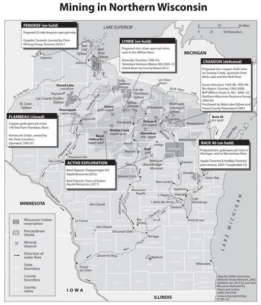 A copper, gold, and silver open pit mine operating a mere 140 feet from the Flambeau River in northern Wisconsin, the Flambeau Mine operated from 1993 to 1997. The Wisconsin DNR and federal Environmental Protection Agency determined that the Flambeau Mine contaminated a tributary of the Flambeau River with zine and copper to the extent that the tributary is considered an impaired water.